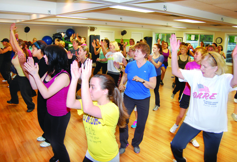 “You have to smile,” Ms. Schroeder tells her students as they participate in a Zumba Fitness class, the Latin-inspired dance fitness program that is quickly catching fire around the globe. The ladies have no problem following Ms. Schroeder’s call.