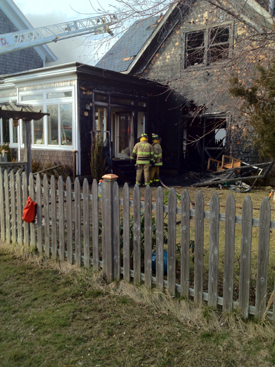 The fire apparently crossed a deck and into a crawlspace in the house at 600 Majors Pond Road off Village Lane, causing a partial collapse of a first floor corner into the basement, the chief said.