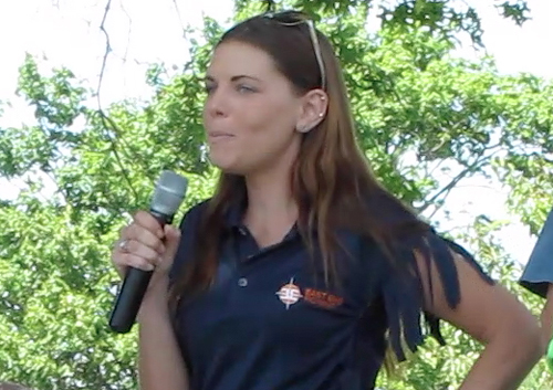 “He pushed me up on stage,” said Amy Wesolowski, who claimed in a telephone interview that the man forced her to make the announcement in front of the large crowd on the Peconic Riverfront.