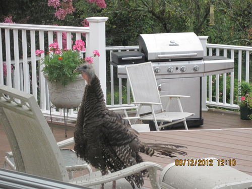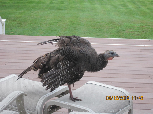 The turkey tried out most of the couple’s outdoor deck chairs and seemed to be quite at home, they said. The turkey kept looking in the windows and the door, perhaps waiting for an invite.