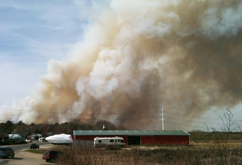 The fire began on the north side of the Brookhaven National Laboratory property about 2:30 p.m. April 9, and quickly spread through the surrounding forest, eventually finding its way into residential areas in Manorville south of Calverton thanks to dry conditions and high winds, authorities said.