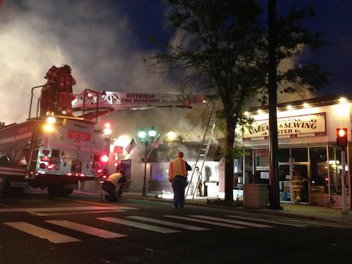Two Riverhead ladder teams were placed on the roof of the building to extinguish the fire, officials said. Volunteers from the fire departments in Wading River, Flanders, Eastport, Manorville, Westhampton and Hampton Bays all assisted at the scene. The Jamesport Fire Department served as backup at the Riverhead firehouse.