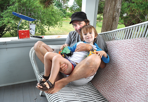 It’s just past 3 p.m. at the East Marion home of art dealer Jose Martos and artist Servane Mary, when the couple’s 3-year-old son, Julian, comes bounding down the stairs in search of Mr. Martos, who is sitting on a wicker couch on the front porch.