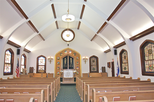 The synagogue has also added a curved window facade to the exterior that updates the temple’s look while keeping much of its original style intact.