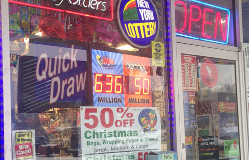 All across the North Fork today, clerks have been transformed into salesmen, urging customers to take a chance at the unlikely life-altering jackpot.