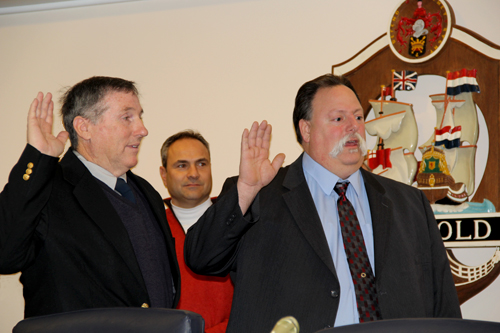 Town Board members James Dinizio and the newly elected Robert Ghosio, formerly a town trustee, were among those sworn in. Mr. Ghozio said he was excited to get involved in issues beyond environmental sensitivity and wetlands.