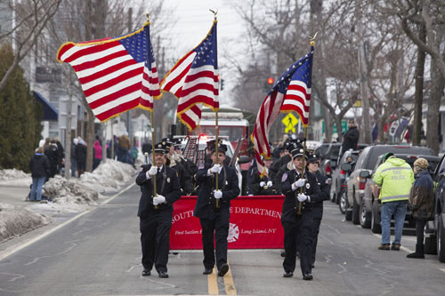 As yet another snowstorm began building over the North Fork, the Greenport Fire Department held its 169th annual Washington’s Birthday parade Saturday afternoon.