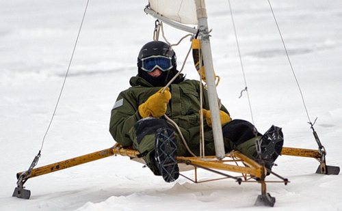 Smart ice boaters dress warmly in layers, with a warm jacket, gloves, a winter hat and boots to protect them from the elements.
