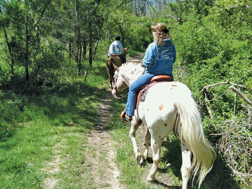 Logistics become part of the adventure, especially because horses are rather inefficient, according to the first and second laws of thermodynamics. Taking the caloric content of 50 pounds of grass or hay and 50 pounds of water (about six gallons) per horse per day as input, the 70 pounds of manure and perhaps 20 pounds of urine generated by a single horse seem like a lot of waste! If you don’t have a waste hauler, you had better have plenty of land to spread the piles, plus the physical fitness regimen to handle the waste disposal on a daily basis.