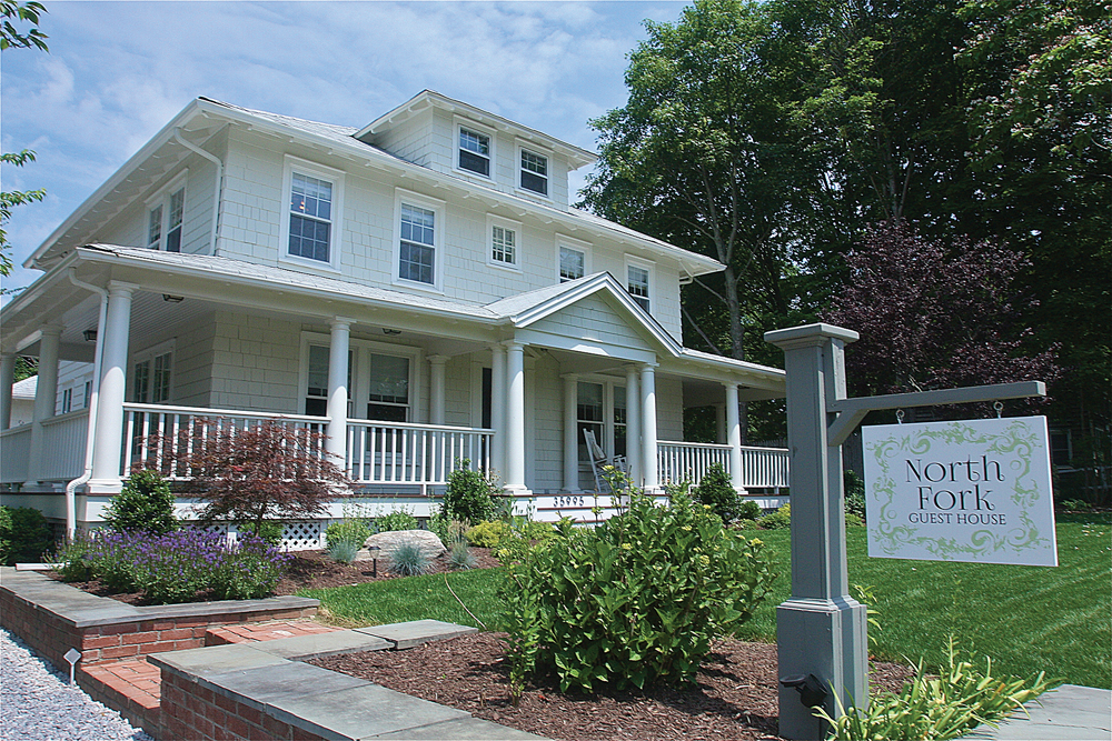 Upstairs at the North Fork Guest House, three of the home’s five bedrooms are reserved for guests. Each guest bedroom has a queen- or king-sized bed and its own bathroom featuring eco-friendly toiletries. In the morning, Ms. Kelly makes customized frittatas and Belgian waffles.