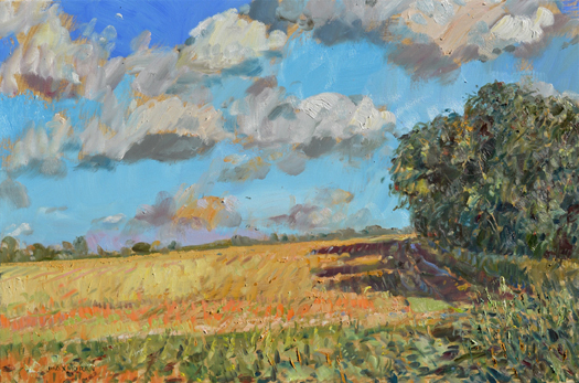 This is Mr. Moran’s sixth annual solo exhibit in the barn gallery. In a press release he said, “Projects and possibilities litter my desk and floor, but seeing those Connecticut clouds drifting over the L.I. Sound or farmlands still gives me a rush. I want to capture that. There are still plenty of places that are quiet and hidden away that are a delight to paint and discover for the first time.”