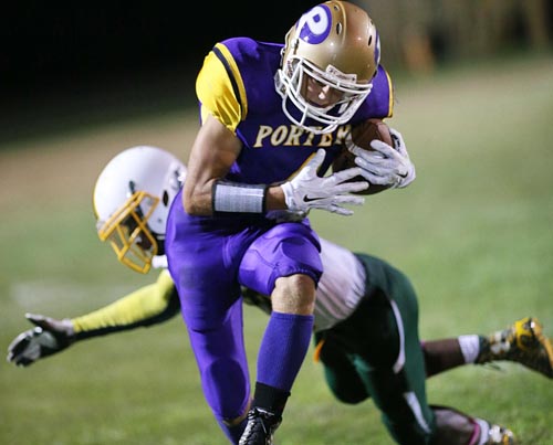 If Skrezec was a little unsure of himself, it would have been understandable. Not only was this his first varsity football game, it was his first football game, period, in two years. He had played for the Porters’ junior varsity team two years ago before switching to play soccer last year.