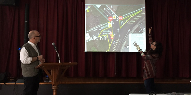 The ongoing debate of how to make the intersection of Love Lane, Route 25 and Old Sound Avenue safer continued Saturday morning when approximately 50 community members gathered at Mattituck Presbyterian Church.