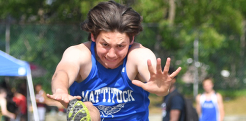 In the high jump, Mattituck senior Darius Brew placed second with a height of 6-2. He entered the competition at 5-8, which he cleared on his first attempt as he did at 5-10, 6-0 and 6-1 before he needed his third try at 6-2 to make that height. He failed on three attempts at 6-4.