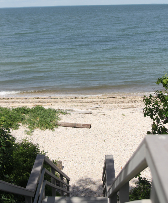 Top photo: Two people climbed these stairs and cried for help after traveling across the Long Island Sound in a kayak from Connecticut. (Credit: Jen Nuzzo)