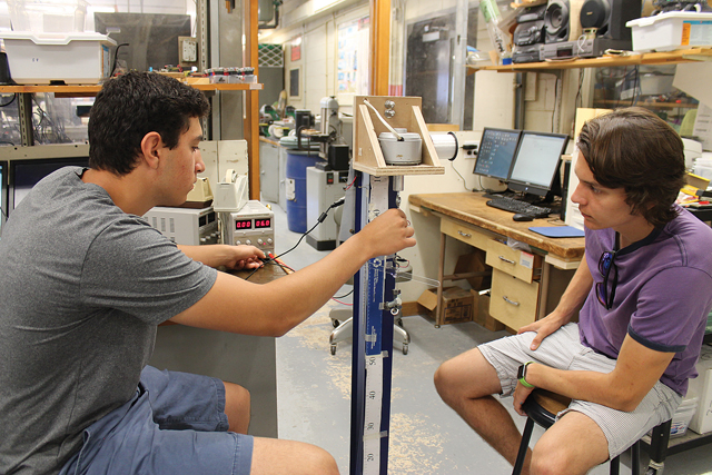 Jack Dufton, 2016 salutatorian, and Yianni Giannaris spent more than eight hours a week on the project, which required repeated trial and error to perfect engineering muscles out of fishing line.