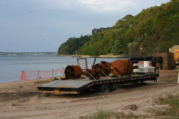 Photo: Equipment rusting at Crescent Beach in the wake of LIPA’s failed tunnel dig in 2013. (Credit: Ambrose Clancy)