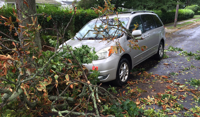 Caption: Some downed branches in Orient Tuesday — an aftermath that hardly lived up to the hype.