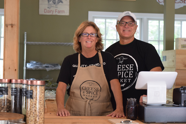 Photo: Patricia Kaczmarczk and her husband Gary inside her new store, Cheese and Spice Market, located in The Shoppes at East Wind shopping plaza. (Credit: Vera Chinese)