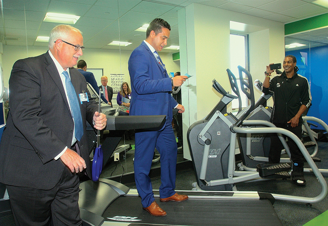 During last week’s ribbon cutting, Patty Ward, a 10-year assistant physical therapist, tried out the elliptical machine.