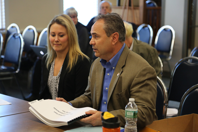 Photo caption: Highway Superintendent Vincent Orlando speaks at Tuesday’s Town Board meeting. (Credit: Paul Squire)