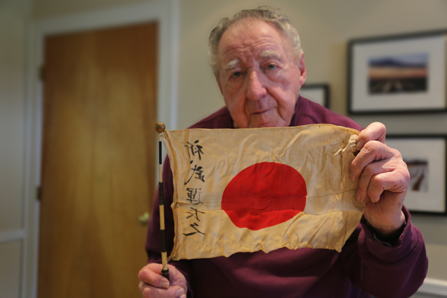 All these years later, Mr. Vicarelli still has mementos from his time in Japan and aboard the Indiana: a small Japanese flag, the weaponry shells, a rifle and logs from the ship that documented details about day-to-day activities. His uniform from the Marines remains pressed as if ready to be worn at a moment’s notice.