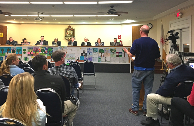 Photo: Winemaker Adam Suprenant addresses the Southold Town Board on agricultural definitions Tuesday night. (Credit: Kelly Zegers)