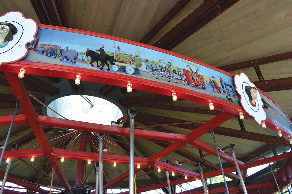 The Mitchell Park carousel in Greenport recently gained some new flair with 14 rounding boards replicating scenes of the village’s history.