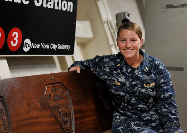 Photo: Ensign Tracy Grim aboard the USS New York. (Courtesy of: Mass Communications Specialist 1st Class Robert Zahn)