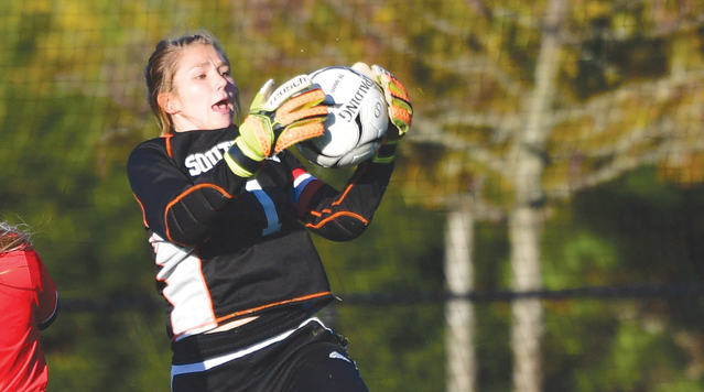 Second photo: Cole Brigham, the goalkeeper for Southold. (Credit: Bob Liepa)