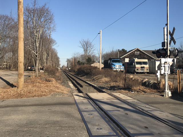 Photo caption: Trains are canceled due to work at the rail road crossing on Peconic Lane in Peconic. (Credit: Taylor K. Vecsey)