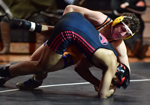 Another set of Mattituck senior twins, Sean and Brian Feeney, picked up wins on pins. Sean, wrestling at 99 pounds, stopped Brendan Goodrich at 3:36. Brian put an end to his contest at 106 by downing Jack Tyrell at 1:53.