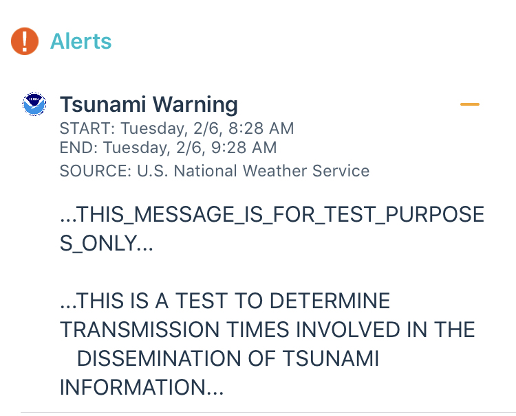 National Weather Service: Tsunami warning was just a test