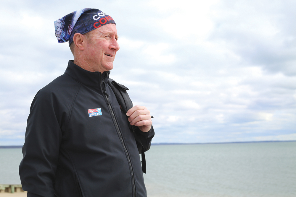 Top photo caption: Duffy Drum pictured in Mattituck as he prepares for his adventure that starts next month. (Credit: Joe Werkmeister)