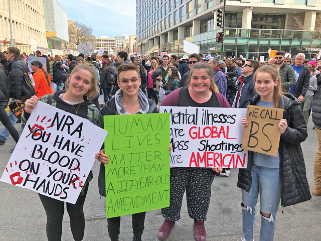 Photo caption: Mattituck students (from left) Joy Davis, Alex Bellavilla, Martha Terry and Mackenzie Daly at Saturday’s March for our Lives in Washington, D.C. (Courtesy photo)