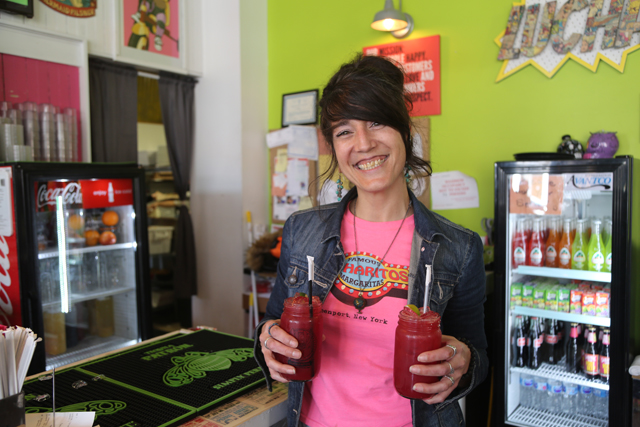 Normally I work full time here in Greenport, but with Little Lucharitos opening I did work two nights there. It’s similar and yet pretty different. The menu is a tiny bit different; it’s a smaller area, but same feel. You walk in and you’re hit with the colors and the art. It’s beautiful.