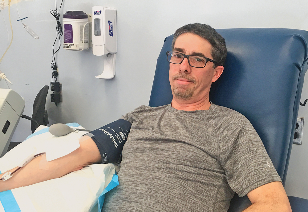 Last Thursday, Robert Verbeck, a fifth-grade teacher in the Shoreham-Wading River School District, arrived at the hospital where he’s been so many times before. Wearing a gray T-shirt and jeans, the 53-year-old relaxed in a chair as a nurse connected his arm to a machine that would filter blood out of his body and then back in for nearly two hours, a process that spins the platelets out while preserving his blood. Unlike regular blood donations, for which two-month intervals are required, donors can repeat the platelet process every two weeks, allowing up to 24 in a year.