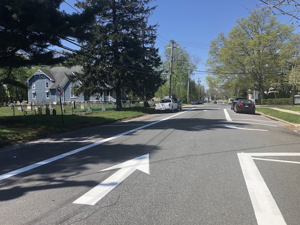 The town last week restriped a portion of Old Sound Avenue with arrows and delineated parking spaces to make it more apparent to drivers that the road was one-way westbound up to Westphalia Avenue in response to resident’s concerns.
