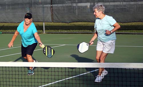Pickleball, which is played with a paddle and Wiffle ball-style plastic ball, combines elements of tennis, badminton and ping-pong, and has become common in recent years.