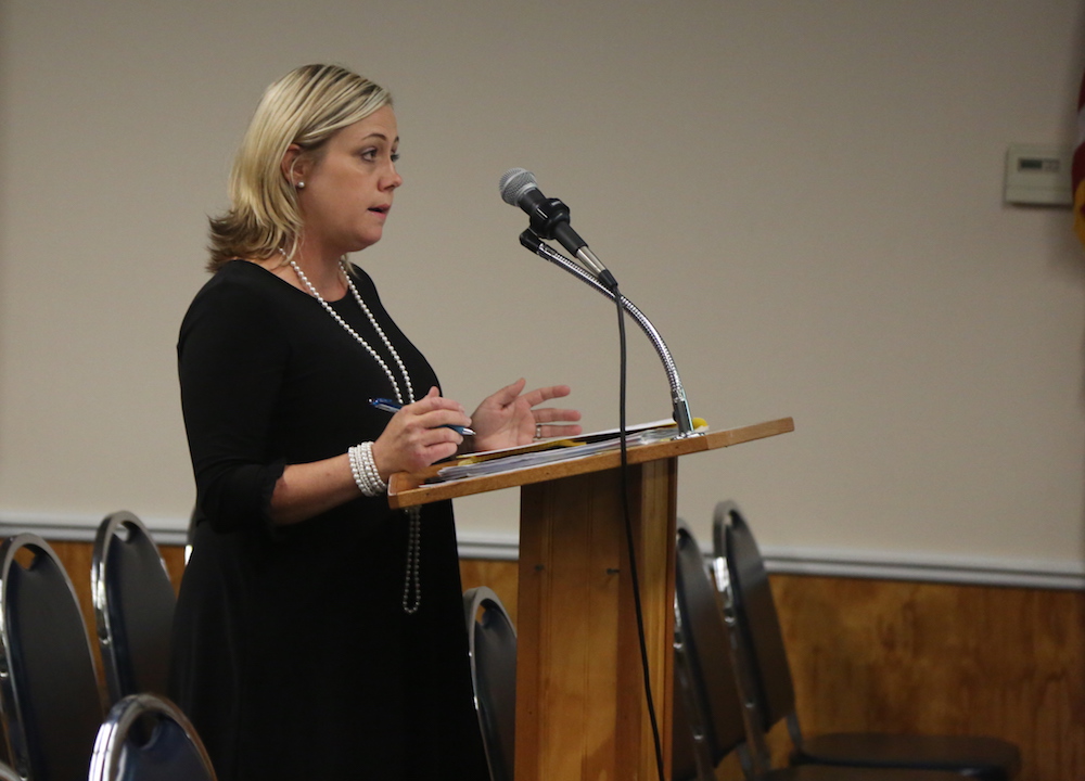 Photo caption: Alison Latham spoke during the public hearing. (Rachel Siford photo)