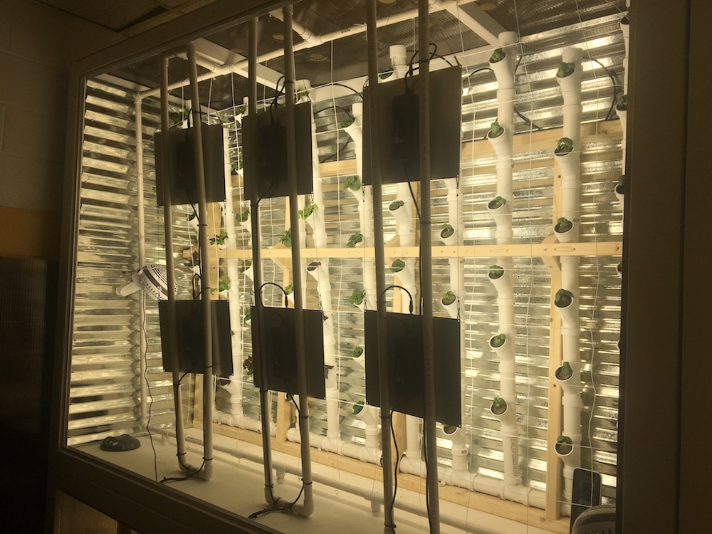 “This all started two years ago in the Design, Drawing and Production class,” technology teacher Mike Davies said. “We kind of took the reins with it — we got the research out of the way and decided to make a vertical hydroponics system because we wanted to conserve space and have it inside the classroom and next to the cafeteria.”