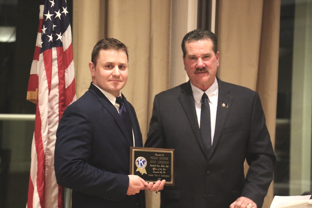 The award was announced and presented to Mr. Crosser at Friday’s police awards ceremony at the Sea Star Ballroom in Riverhead. The ceremony is sponsored by the Kiwanis Club of Southampton, which originally recognized only Southampton police officers but later expanded the awards to include all East End departments.