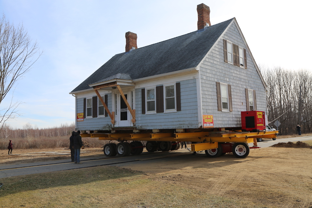 In January, a new foundation was poured to support the Case House at Cleo’s Corner. The house was then transported through vacant field before crossings its first road Friday. The next phase will be to move the home across Horton’s Lane to its final destination. The relocation effort is expected to be completed this month.