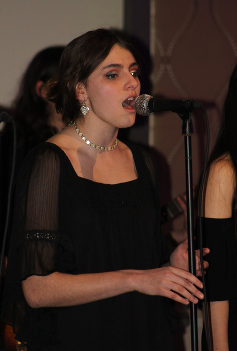 Natalia Rahim of Riverhead High School on vocals with brothers Gage Brown-DeVirgilio and Tristen Brown-DeVirgilio of Middle Island on electric bass and electric guitar. (Credit: Elizabeth Wagner)
