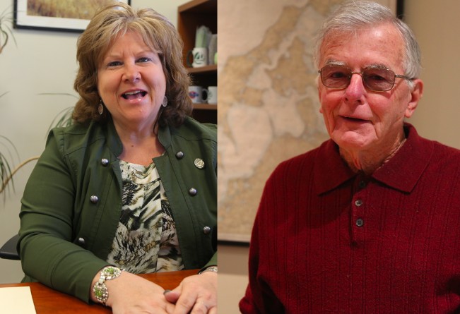 Photo caption: Longtime Chamber of Commerce member Linda Carlson and Cutchogue Fire Department member Jim Fogarty Sr. will serve as the grand marshals. (Kate Nalepinski photos)