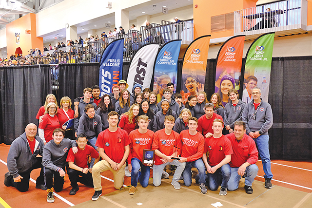 Top photo caption: The Southold/Greenport high school robotics team at the 2019 Finger Lakes Regional competition at Rochester Institute of Technology last week. (Credit: Scott Borden, courtesy photo)
