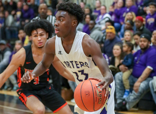 Photo caption: Ahkee Anderson, playing for Greenport in its regional final win over Tuckahoe this past March, will now call Center Moriches home. (Credit: Daniel De Mato)