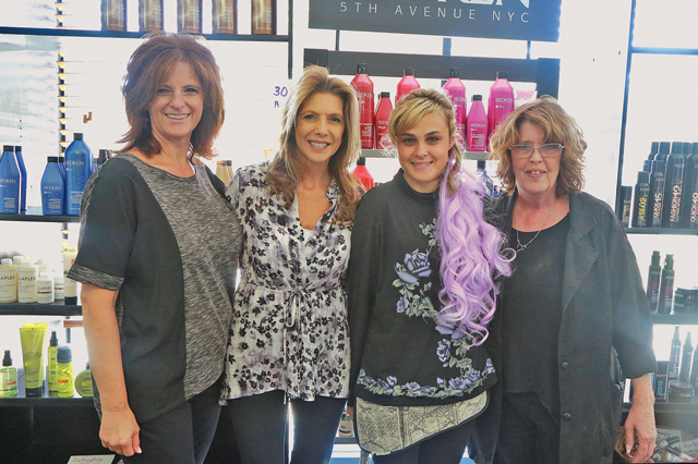 Caption: Nancy Blank (from left), Genene Brasca, Alison Letre and Sara Grohoski at Hair Experience in Mattituck Friday. The group will open Studio 3 Salon at another Mattituck location at the end of August. (Credit: Kate Nalepinski)
