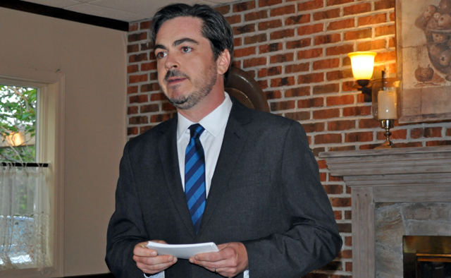 Top Caption: Mr. Rallis at the Southold Town Democratic Committee nominating convention in 2015, the year he was nominated to run for town supervisor. (Credit: Grant Parpan)