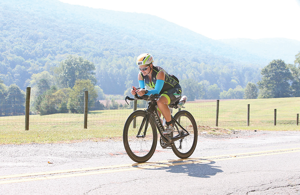 Top photo caption: The 112-mile bicycle ride is the second leg of an Ironman race. (Courtesy photo)